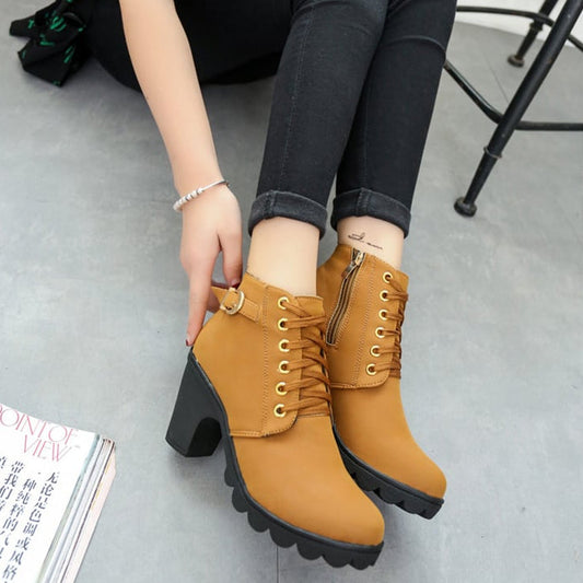 Stivaletti da Donna Autunnali con Lacci, Zip Laterale e Suola Chunky