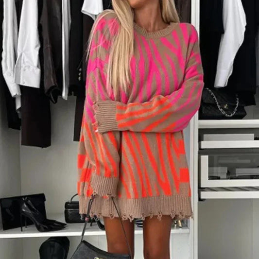Maglione a maglia con stampa zebrata perfetto per la stagione autunnale e invernale