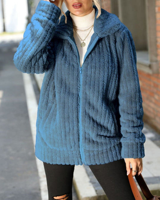 Giacca Invernale da Donna in Peluche con Chiusura a Zip