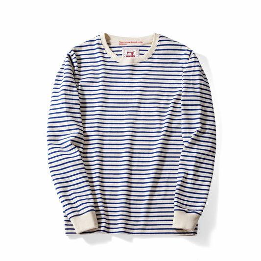 Herre T-shirt med Lange Ærmer og Rund Hals med Striber