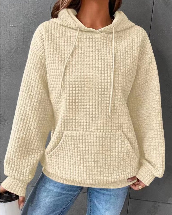 Denne damesweater har hætte, lange ærmer og en ensfarvet farve, hvilket gør den til et alsidigt lag-på-lag-stykke. Pullover-stilen gør den nem at tage på, mens ribkanterne ved ærmer og kant giver strukturen til helheden. Fås i neutrale nuancer, som let kan matches med forskellige outfits til daglig brug.