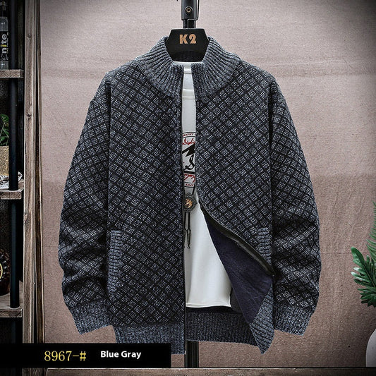 Men's Knit Cardigan Coat with Round Neck and Long Sleeves