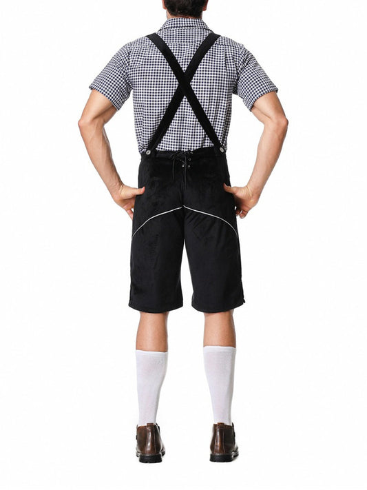 Men's Complete Lederhosen with Embroidered Pants, Suspenders, and Checkered Shirt for Festival