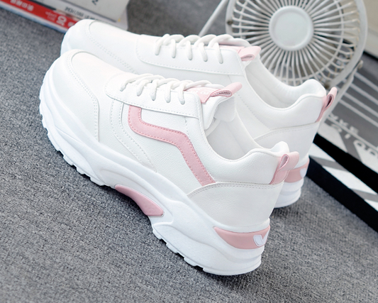 Low Women's Sneakers with Platform, Ribbon Laces, Round Toe, Rubber Sole