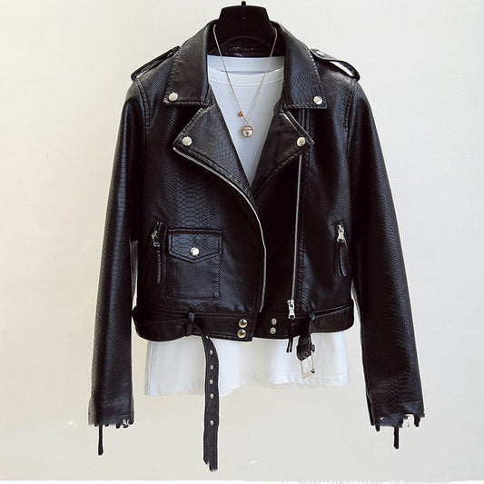 Women's Slim Fit Biker Jacket with Snake Print, Notched Collar, and Zip Closure