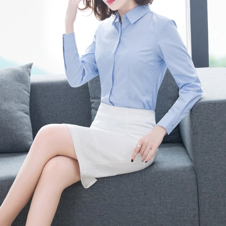 • Mid-length skirt: Provides a balanced and professional silhouette
