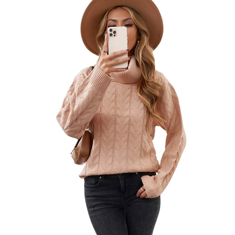 This women's sweater is designed with a high neckline and long sleeves, making it the ideal choice for colder days. The solid color design adds versatility, while the pullover style ensures easy wear. With a thicker knit and a regular fit, it offers layering options for both casual and work outfits.