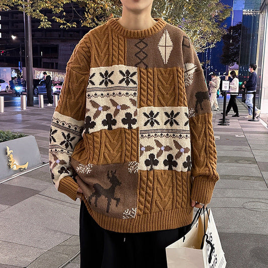 Jersey de hombre, suéter de cuello redondo, ajuste holgado, manga larga