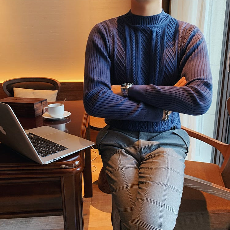 Jersey de otoño para hombre con cuello alto medio, ajuste slim, tejido grueso