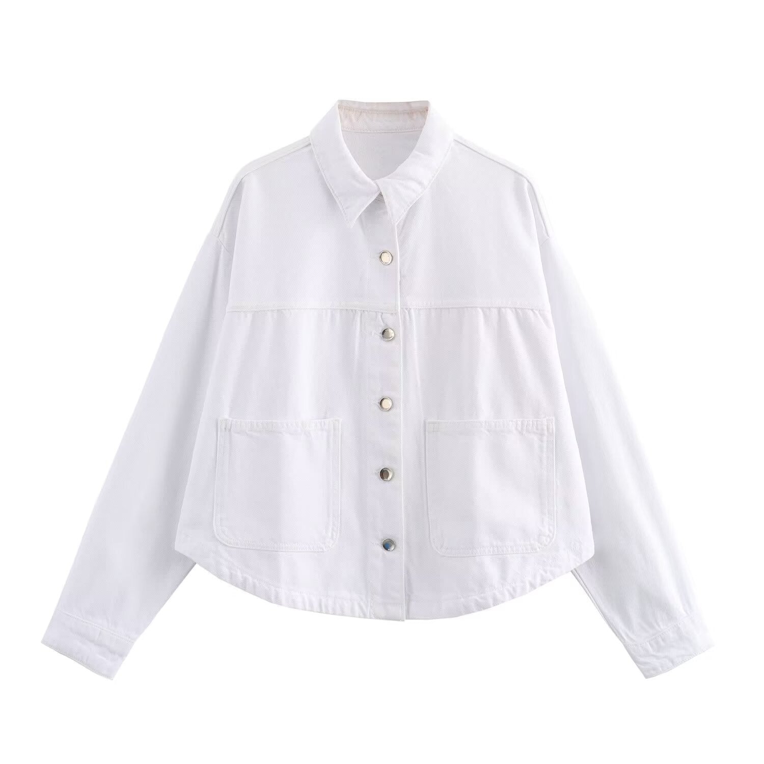 Giacca Camicia Donna in Denim con Chiusura a Bottoni e Design a Pannelli