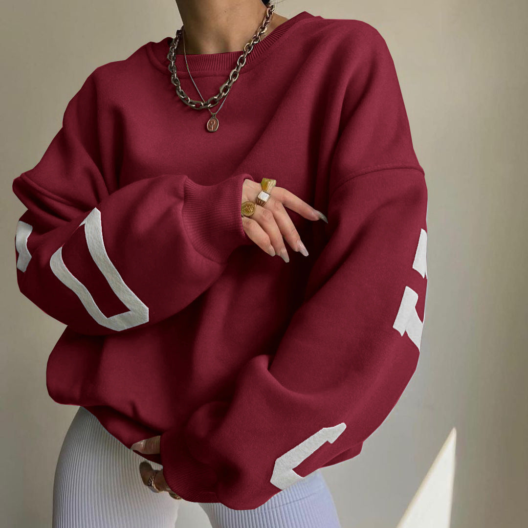 Questo top da donna con stampa presenta una vestibilità ampia e un classico girocollo, offrendo un’opzione versatile per l’abbigliamento quotidiano. Il motivo con lettere e testo aggiunge un tocco distintivo alla silhouette semplice. Dotato di maniche lunghe, si abbina facilmente a jeans, pantaloni o gonne per un look casual ma curato.